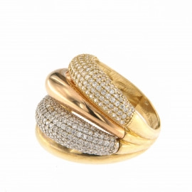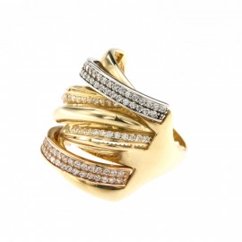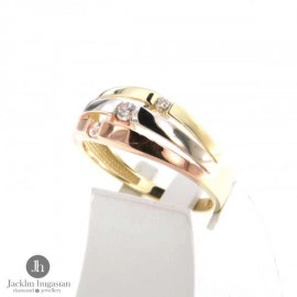 Пръстен от "Jacklin " в жълто, бяло и розово злато с циркони