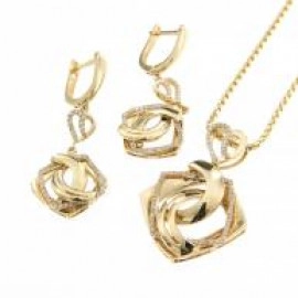 Комплект пръстен,обеци и висулка от " Jacklin " в жълто злато,гланц с цирконии