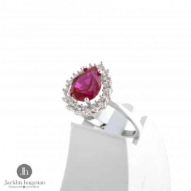 Пръстен от "Jacklin " в бяло злато с червен рубин и циркони