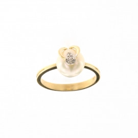Пръстен от "Jacklin " в жълто злато гланц с циркони и култивирана бяла перла