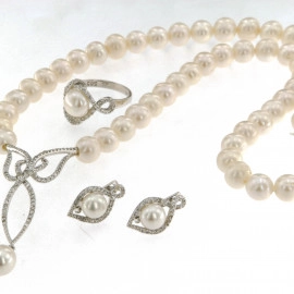 Комплект пръстен и висулка от "Jacklin " с цирконии и култивирана перла